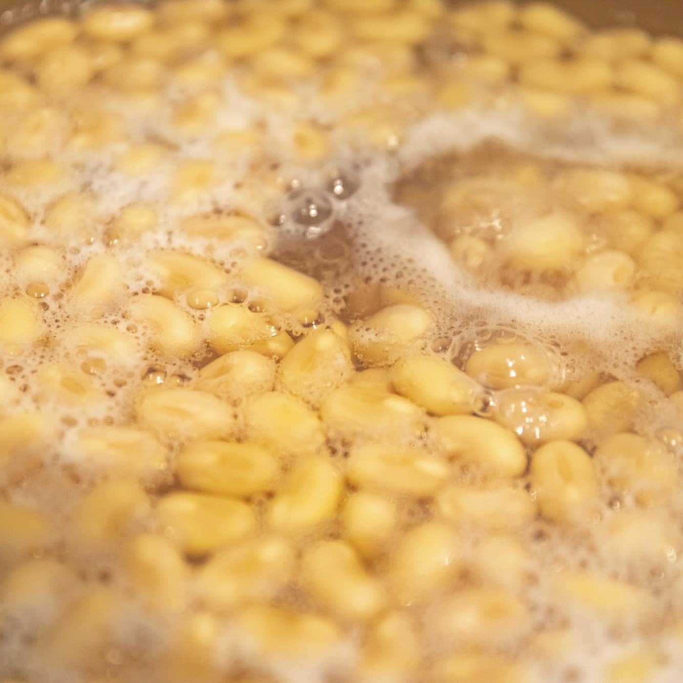 しっかりと混ぜ合わせて大豆にまんべんなく行き渡るように仕込みます。