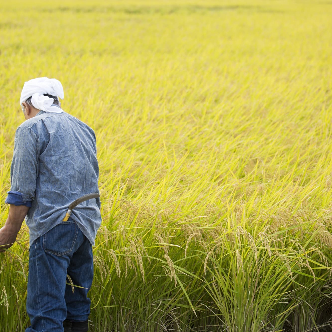 熟練の目利きでいつ稲刈りをするか、稲穂と相談しているようです。