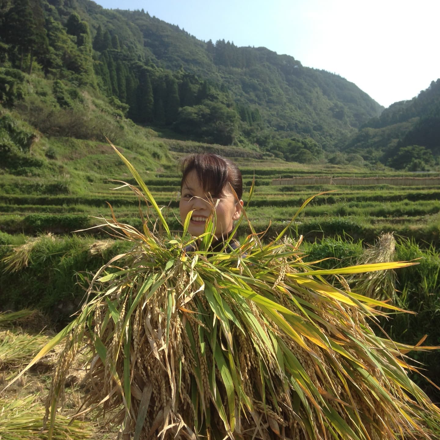 待ちに待ったこの瞬間、たわわに実ってぎっしりと詰まった稲穂はずっしりととても重たいです。コンバインで脱穀までする田んぼもありますが、小さい田んぼの稲穂は稲架がけと言って竹で作った物干しざおみたいな棚にかけて干します。晴天が続くと大体1週間くらいで脱穀です。